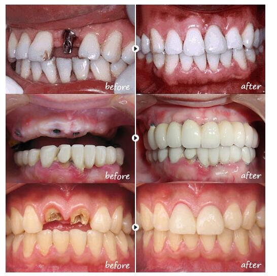 3,半口种植牙技术, 适用于上半口牙齿缺失,可植入4-8颗种植体,也可使用ALL-on-4半口种植牙技术,上体连桥搭冠修复,无痛微创,术后终身维护。使用寿命可达数十年以上,维护得当终身使用。